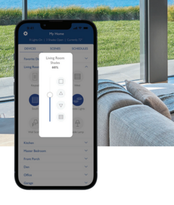 Stay connected to your home from anywhere with the Lutron app—responsive, intuitive, and effortless to use.