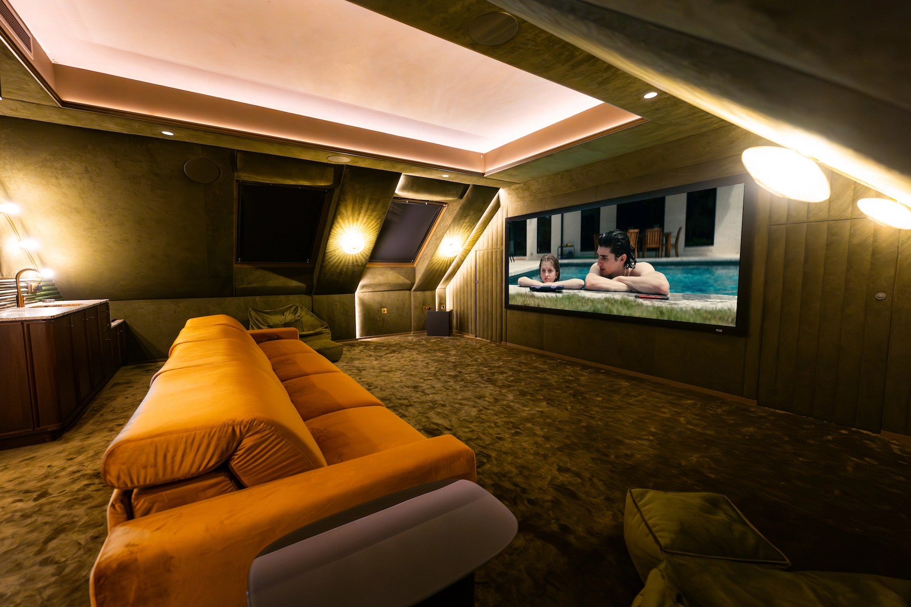 To complete the cinematic experience and ensure total darkness, we fitted the windows and VELUX windows with automated blinds controlled via Lutron.