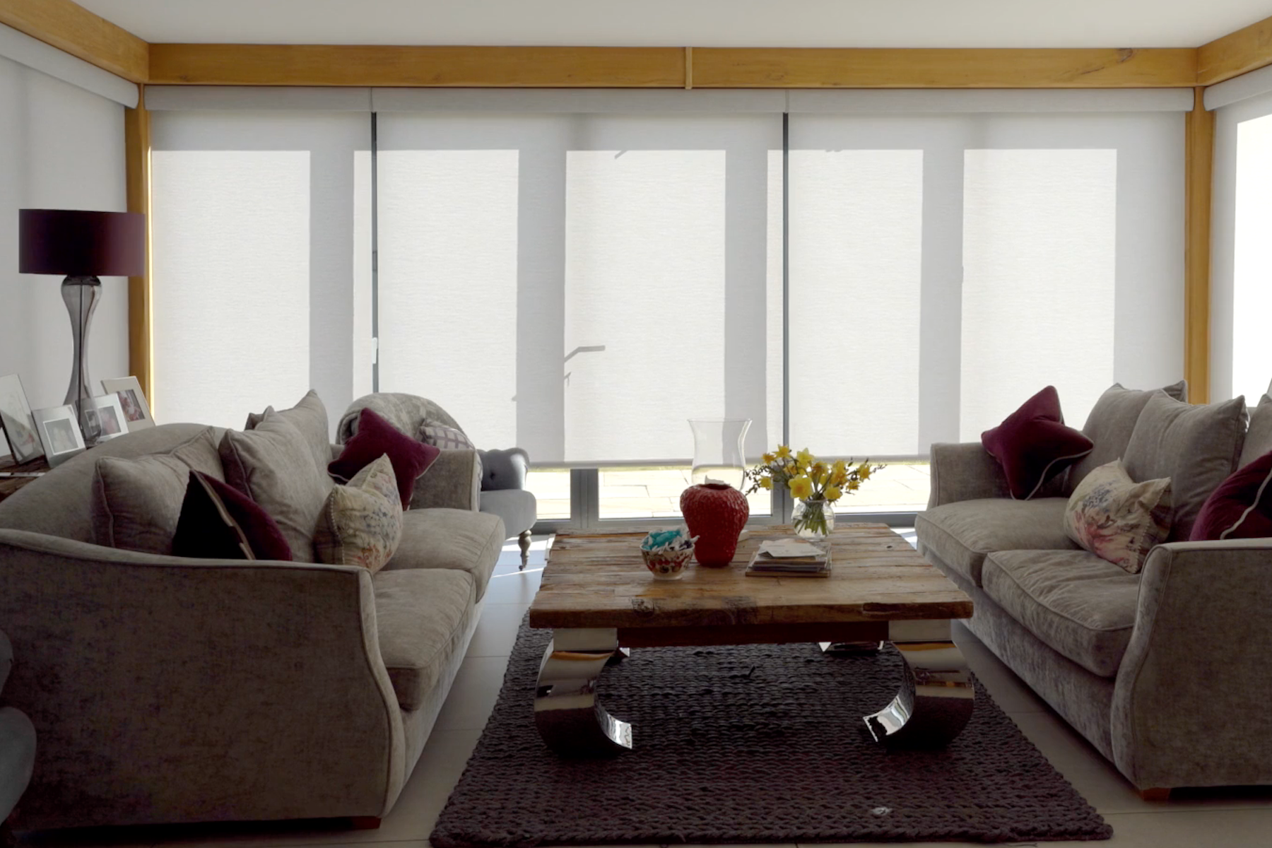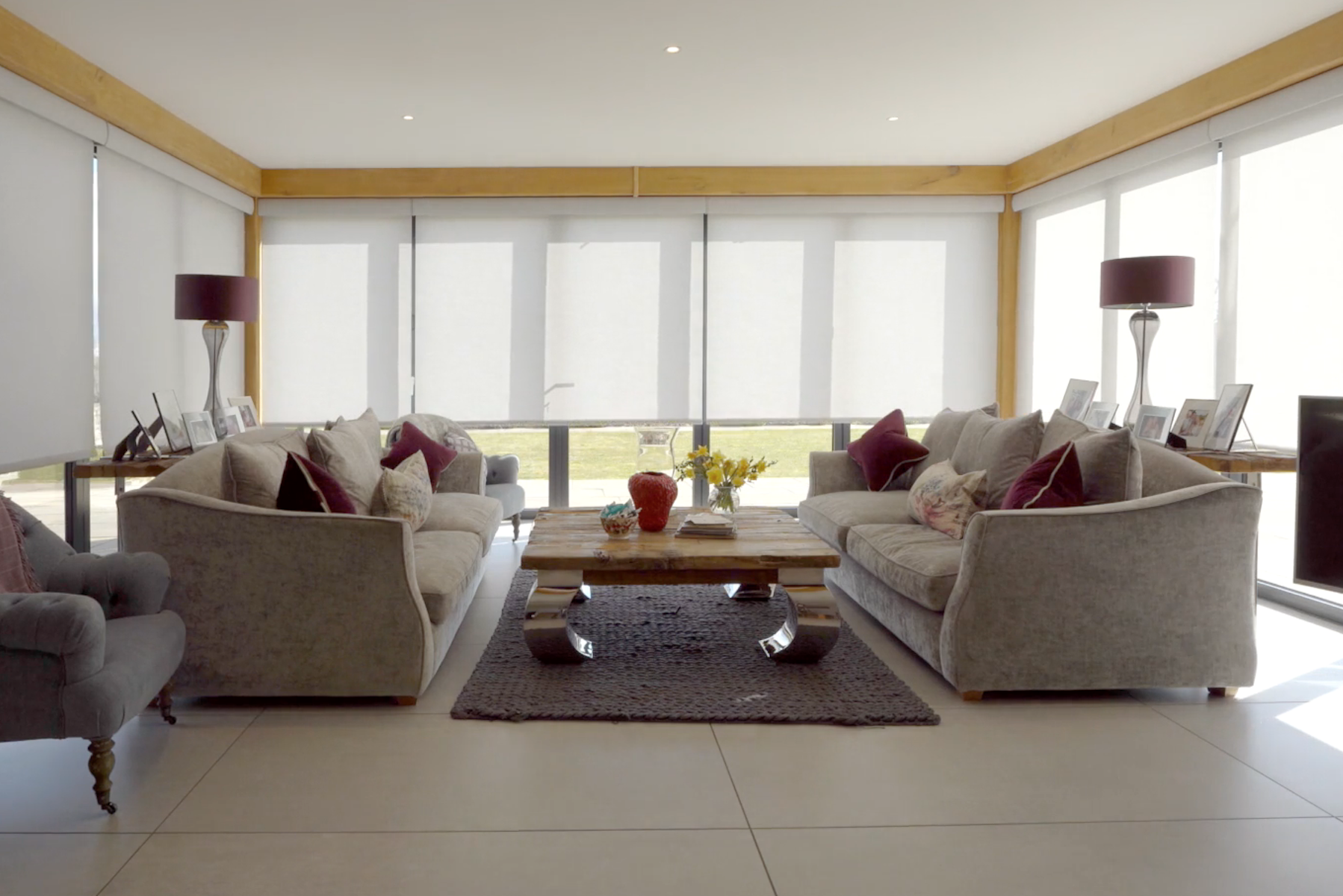 We fitted Lutron Triathlon Roller Shades, with fabric-wrapped fascia. These blinds have a battery-operated model which comes with a 5-year battery life. This product is truly industry-leading as the drive maintains consistent shade speed throughout the battery life cycle by monitoring voltage and compensating for fabric thickness.